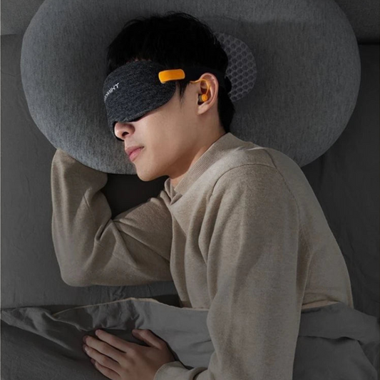Entspannungs-Augenmaske mit integrierten Ohrstöpsel