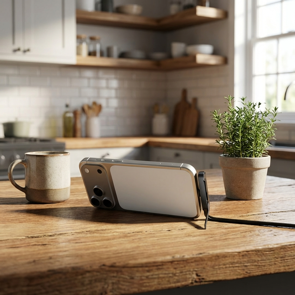 📱 Freihändige Nutzung im perfekten Winkel: Hält dein Smartphone stabil und aufrecht für Videos, Videoanrufe, Rezepte oder Scrollen. Bessere Sicht und weniger Belastung für Hände und Nacken.